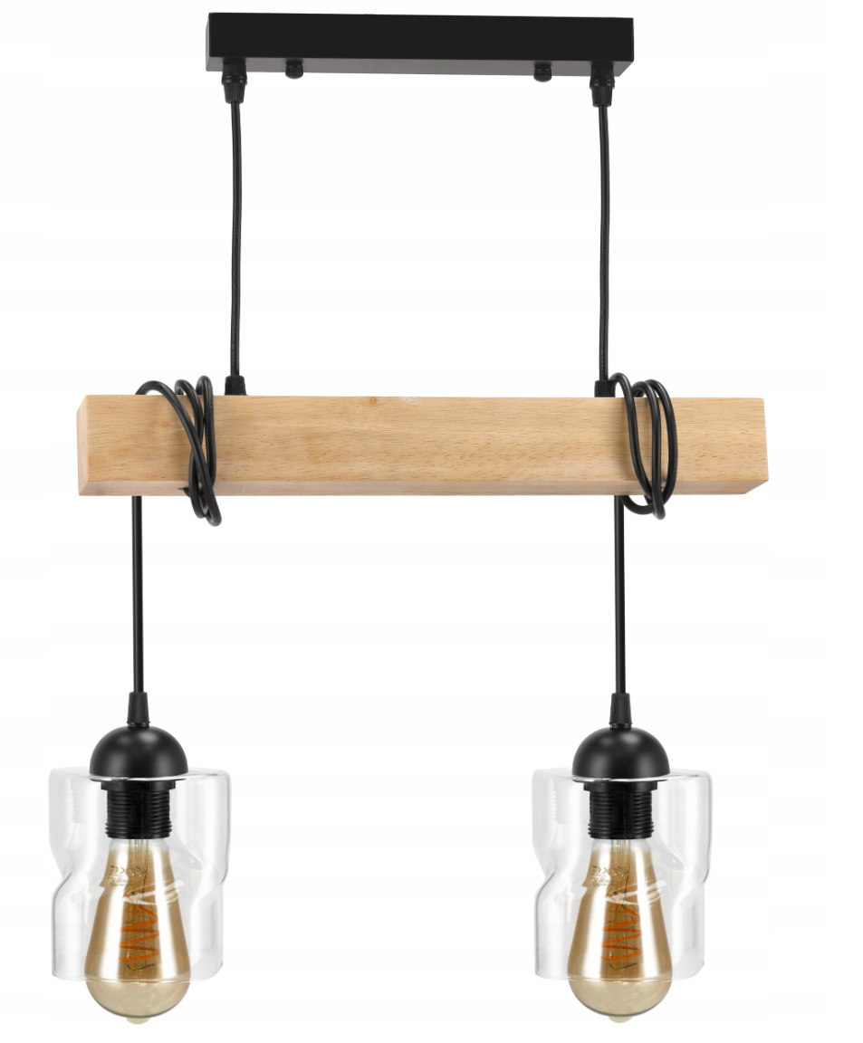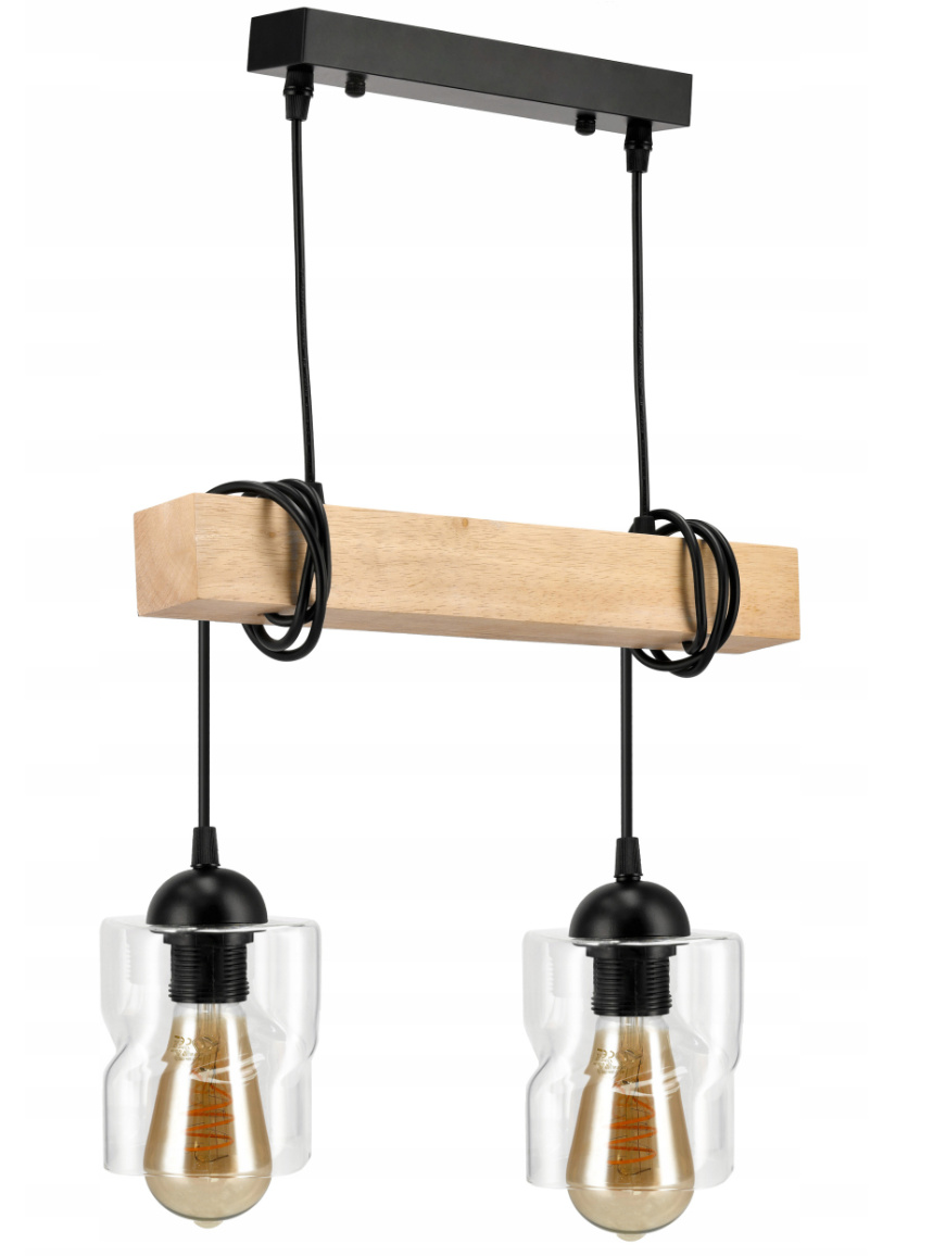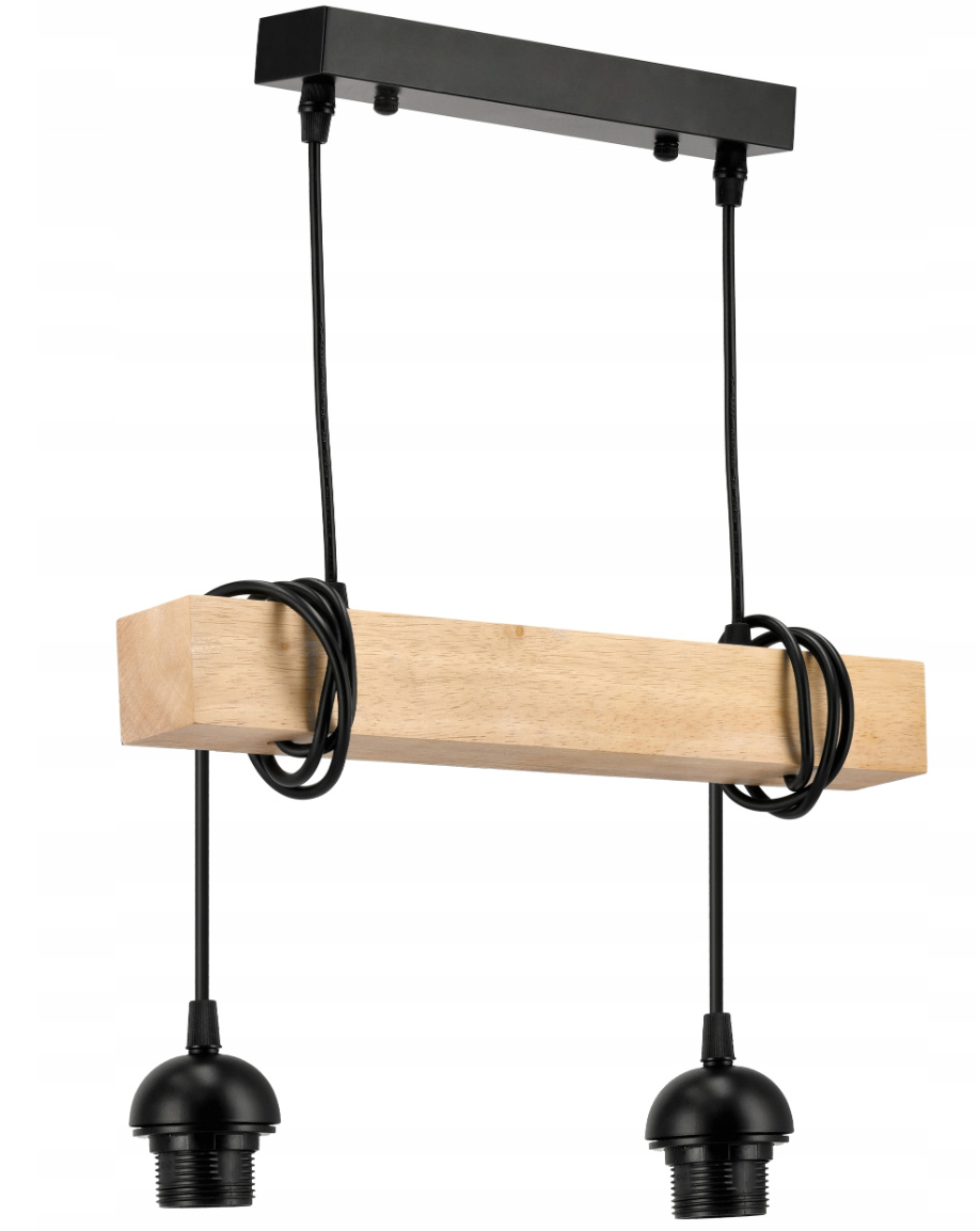 Technické údaje: Napájecí napětí : 230V Světelný zdroj : 2 x E27 (žárovky nejsou součástí sady) Svítidlo má držáky, na které lze přišroubovat stínidla - skleněná stínidla Materiál základny : Ocel + dřevo Barva montáže : Černá Maximální výkon a jediný zdroj světla : 60W (wolframové žárovky) / 20W (LED) Certifikáty : CE, RoHS Další vlastnosti : Vestavěná montážní kostka pro snadné připojení, nastavení výšky pomocí kabelů a paprsku