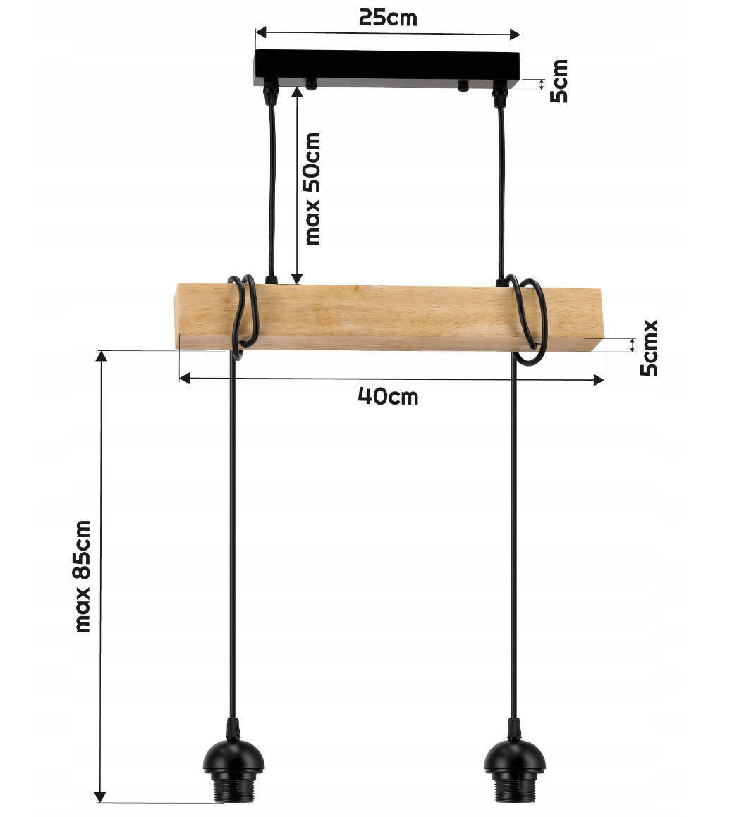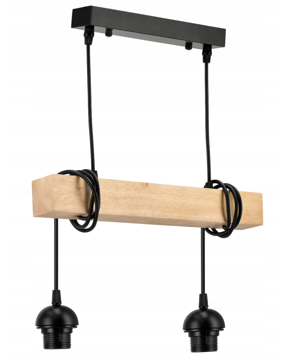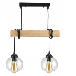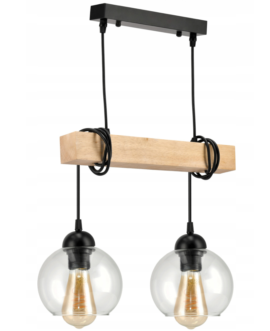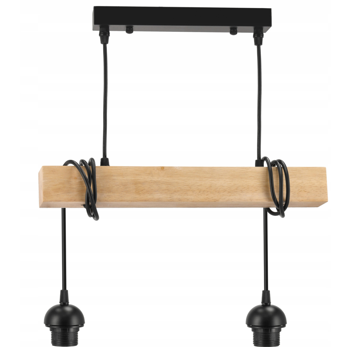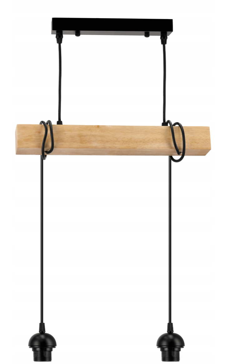 Technické údaje: Napájecí napětí : 230V Světelný zdroj : 2 x E27 (žárovky nejsou součástí sady) Svítidlo má držáky, na které lze přišroubovat stínidla - skleněná stínidla Materiál základny : Ocel + dřevo Barva montáže : Černá Maximální výkon a jediný zdroj světla : 60W (wolframové žárovky) / 20W (LED) Certifikáty : CE, RoHS Další vlastnosti : Vestavěná montážní kostka pro snadné připojení, nastavení výšky pomocí kabelů a paprsku