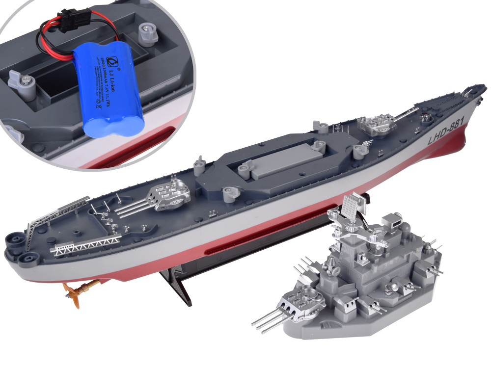 Zdalnie sterowany statek Pancernik LHD-881 to wyjątkowy model w skali 1:390, który zachwyca swoimi rozmiarami i realistycznym wykonaniem. Dzięki długości aż 60 cm robi imponujące wrażenie na wodzie, a intuicyjne sterowanie sprawia, że korzystanie z niego jest proste i przyjemne. To świetna propozycja zarówno dla miłośników militariów, jak i pasjonatów modeli RC.