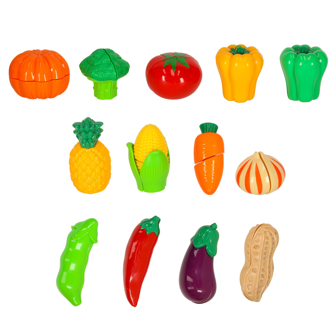 Počet dílků v balení: (13 kusů zeleniny a ovoce ke krájení pomocí segmentů na suchý zip + 15 kusů kuchyňského náčiní).