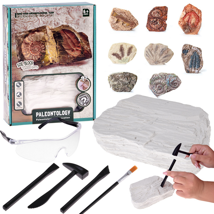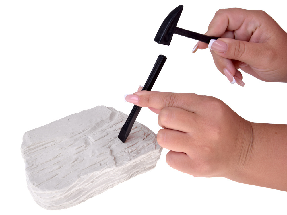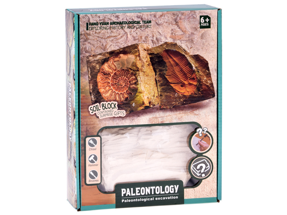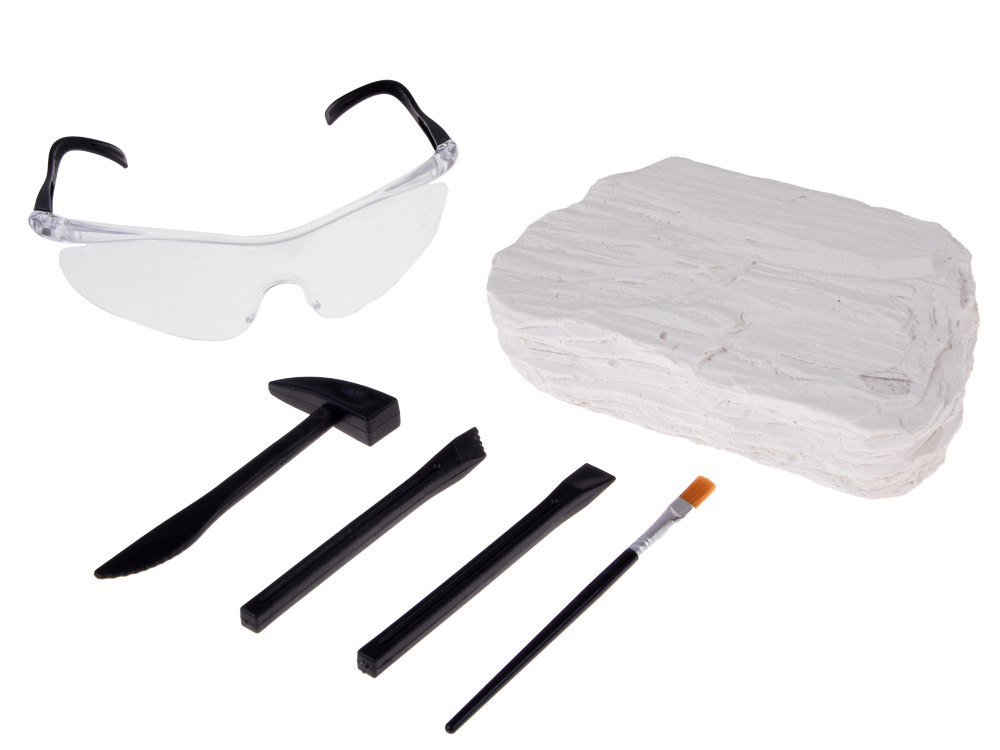 Każda bryła skrywa losową skamieniałość – to niespodzianka, na którą trafisz dopiero podczas własnych wykopalisk. Możesz odkryć m.in.: