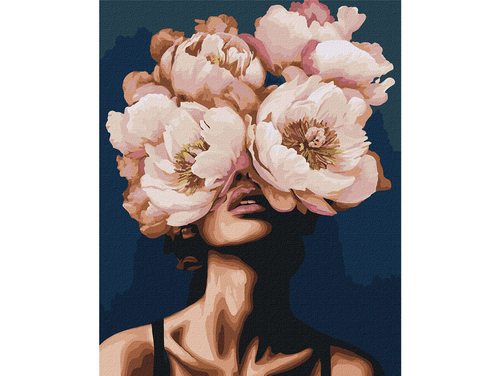 - Gotowe do malowania płótno z eleganckim motywem „Tajemnica piwonii ”, podzielone na pola oznaczone numerami