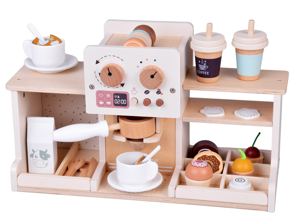 Stwórz w pokoju dziecka wyjątkowy klimat prawdziwej kawiarni! Drewniana kawiarnia z ekspresem to stylowa, solidnie wykonana zabawka, która zachwyci każdego małego baristę. Zestaw nie tylko wygląda pięknie, ale oferuje mnóstwo funkcji, które sprawiają, że zabawa staje się niezwykle realistyczna i angażująca.