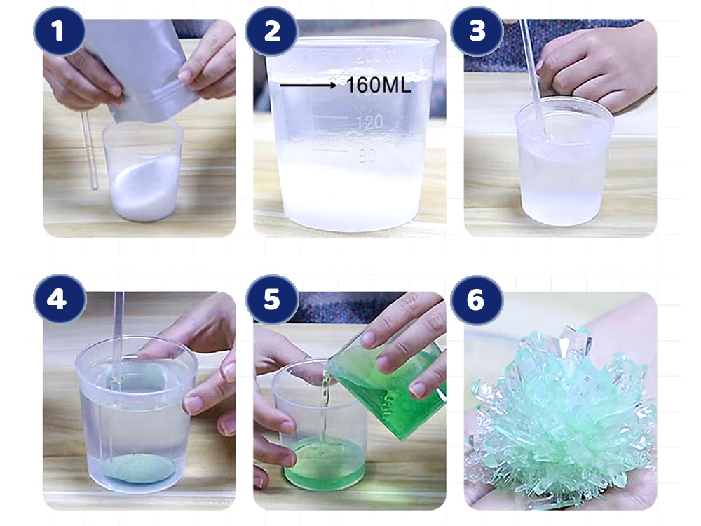 4. Pozostaw roztwór i kryształy w miarce na 4-7 dni. Gdy kryształ osiągnie określony rozmiar, powoli odlej roztwór z miarki, ostrożnie wyjmij kryształ i umieść go w przezroczystym pudełku.