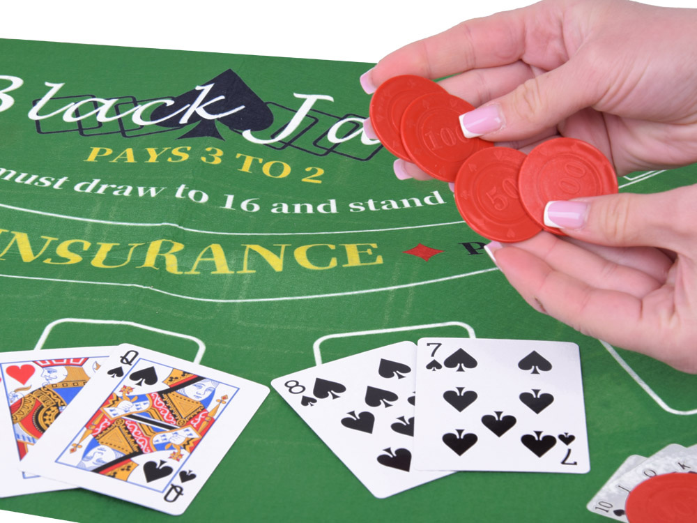 Duży zestaw 2w1 zawiera dwie gry karciane - Pokera oraz BlackJacka.