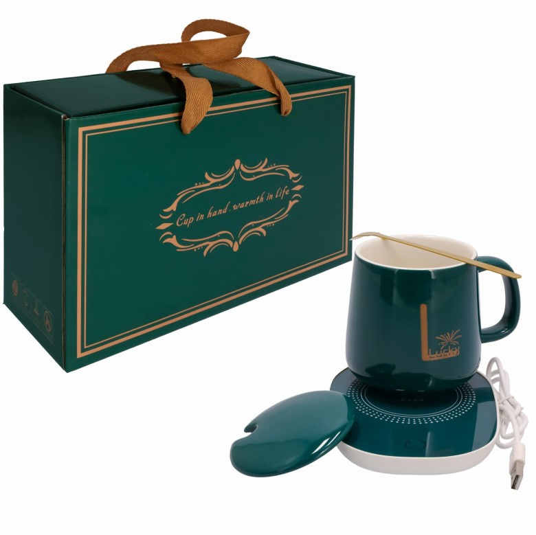 Zestaw prezentowy upominkowy - kubek, łyżka, podgrzewacz elektryczny do kubka