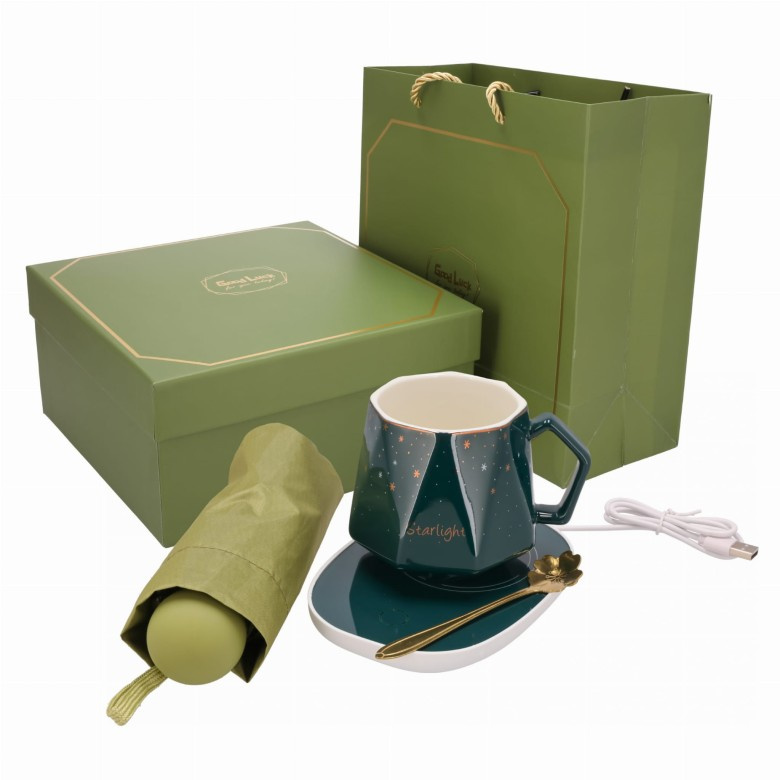 Ceramiczny kubek z elegancką łyżeczką - Duet idealny dla miłośników stylowych napojów. Poczuj wyjątkowy komfort picia ulubionego napoju! Ten solidny, pięknie wykonany kubek to kwintesencja elegancji i funkcjonalności. W zestawie z dopasowaną, stylową łyżeczką tworzą idealny komplet. Składana parasolka turystyczna - Lekka, poręczna i niezawodna – nie da się jej nie lubić. Zmieści się w torebce lub plecaku, a przy tym ochroni przed niespodziewanym deszczem (lub słońcem!). Podgrzewacz do kubka - Nigdy więcej zimnej kawy! Ten sprytny gadżet sprawi, że Twój ulubiony napój pozostanie idealnie ciepły przez długi czas. Doskonały do pracy, na biurko, do domowego kącika relaksu czy nawet w podróży. Niezastąpiony dla tych, którzy cenią komfort i wygodę.
