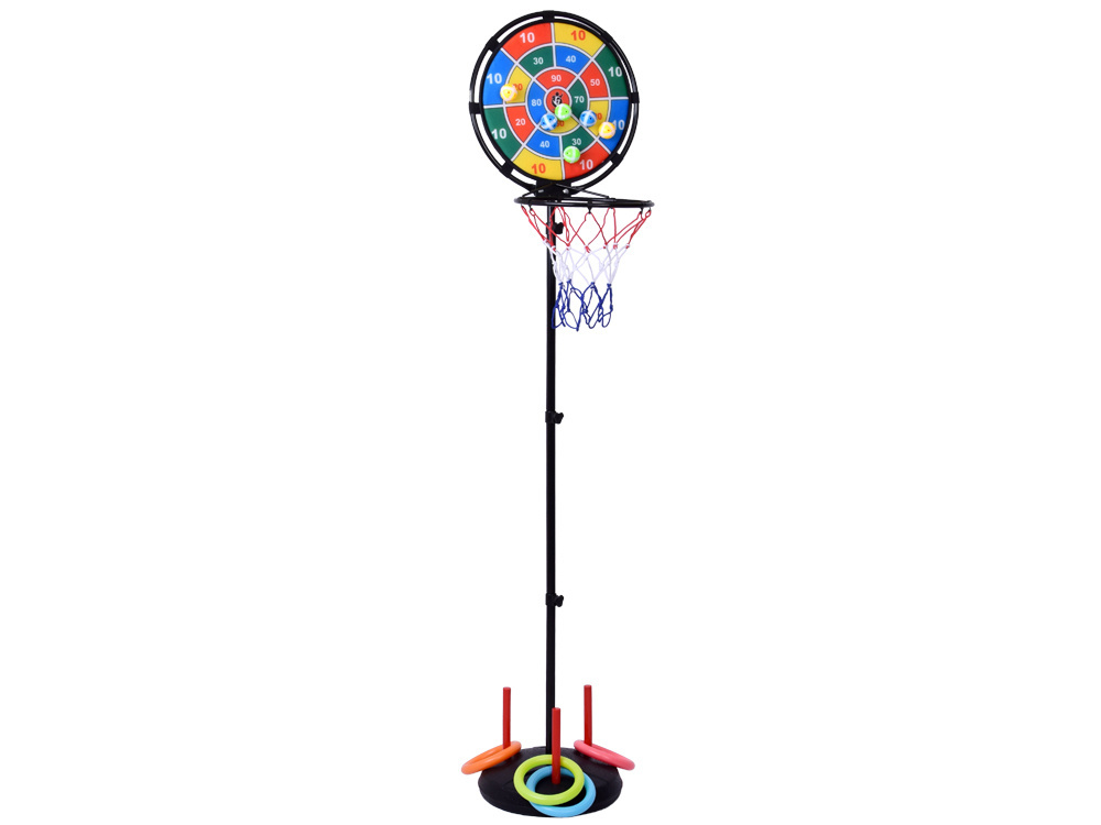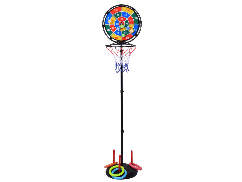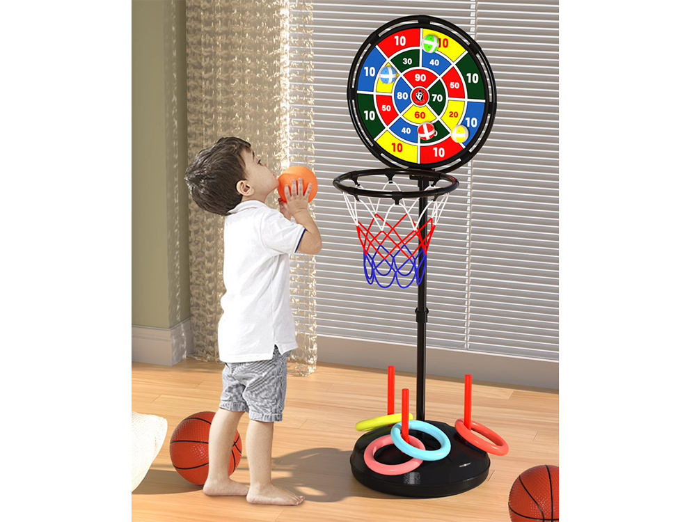 To doskonała propozycja dla dzieci i całej rodziny, która łączy zabawę z aktywnością fizyczną. Dzięki wielofunkcyjnej konstrukcji zestaw umożliwia grę w koszykówkę, rzuty do tarczy punktowej oraz rzuty obręczami. To idealny wybór zarówno do użytku domowego, jak i na świeżym powietrzu.