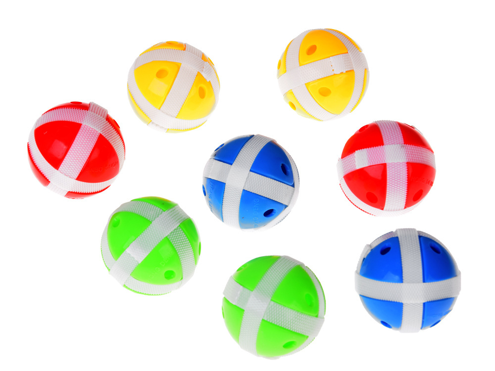 - 6 piłeczek (po 2 w każdym kolorze: niebieski, żółty, czerwony)