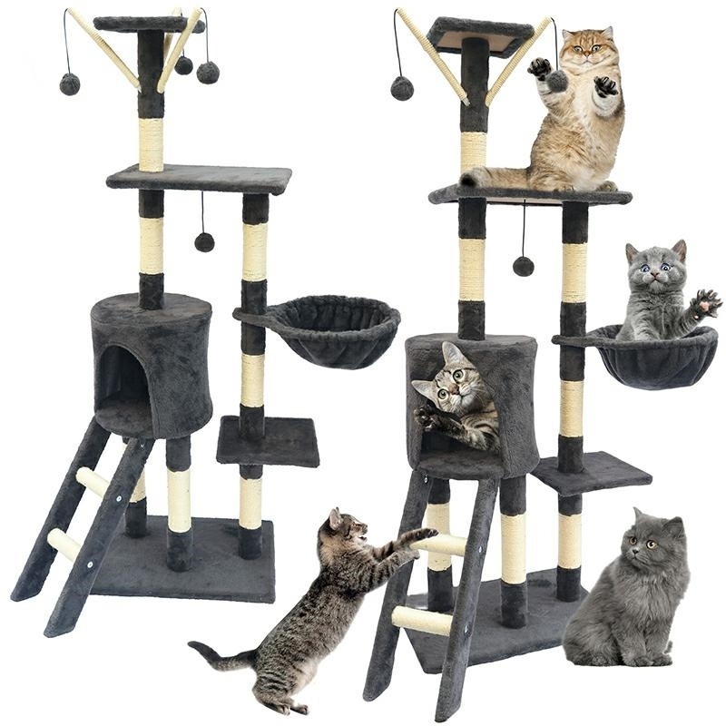 Drapak to idealne rozwiązanie, aby zaspokoić naturalne potrzeby Twojego kota do drapania i jednocześnie chronić meble. Wykonany z wysokiej jakości materiałów, ten drapak jest trwały i atrakcyjny wizualnie. Z różnymi powierzchniami do drapania i zabawy, Twój kot będzie mógł ćwiczyć pazury i aktywnie spędzać czas. Dodatkowo, drapak może również służyć jako miejsce do odpoczynku dla Twojego pupila. Specyfikacja: wymiary podstawy: 49x35cm wysokość: 141cm materiał wykonania: MDF, plusz ,sizal 6 poziomów budka dla kota :30x30x30cm drabinka ułatwiająca wejście:49cm x19 podwieszane legowisko 3 kulki do zabawy wymiary opakowania:52x20x37cm Ilość szt. na palecie: 40